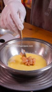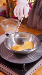 - Heat a pan with oil, pour in an appropriate amount of egg mixture.
