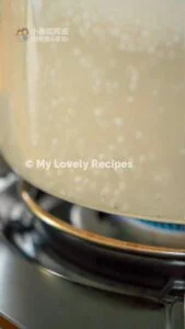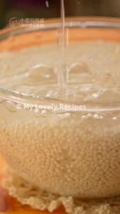 - Drain the sago, pour in the sago after the water is boiling. Leave it to cook until for 20 minutes until sago fully cook and translucent.
