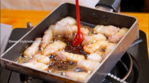 加入料酒、酱油、蚝油、番茄酱和清水,搅拌均匀。