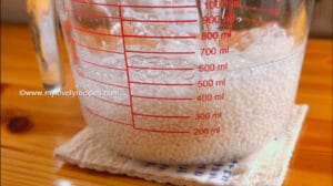 - 准备一个大碗,底下放一个秤,把浸泡好的沙谷沥干倒进去。