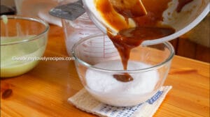 - 一份加入椰糖浆,一份加入浓缩香兰汁还有一份加入清水。各自混合均匀备用。