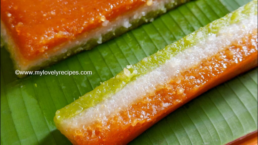 - 褐色层: 加入融化的椰糖浆(Gula Melaka),带着椰糖的醇香。